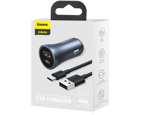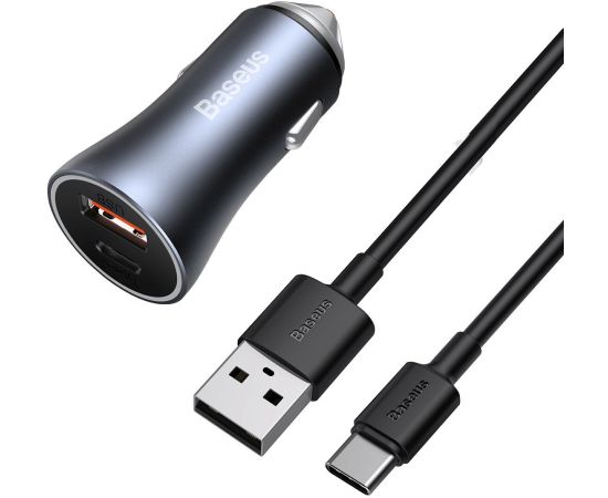 АЗУ Baseus TZCCJD-0G Golden Contactor Pro Dual Quick Charger Car Charger U+C 40W(With Baseus Simple wiring USB For Type-C 5A 1.0m)Dark Gray