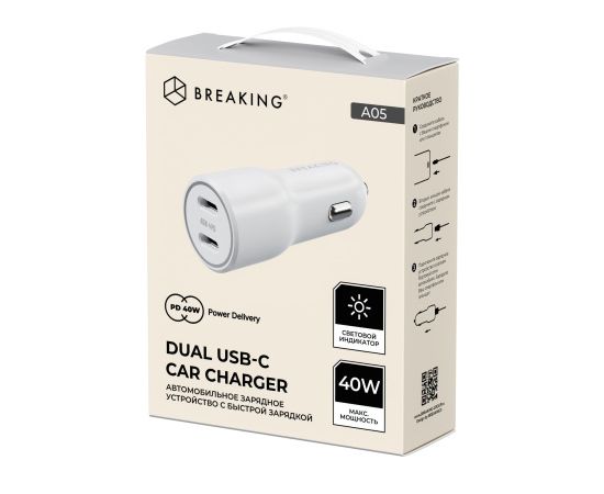 АЗУ Breaking A05, 2USB-C, PD 40W, 3A (Белый)
