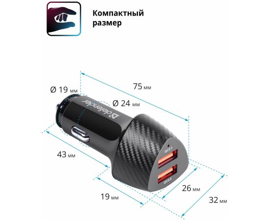 АЗУ DEFENDER UCA-81 2xUSB QC3.0, 36W 83845