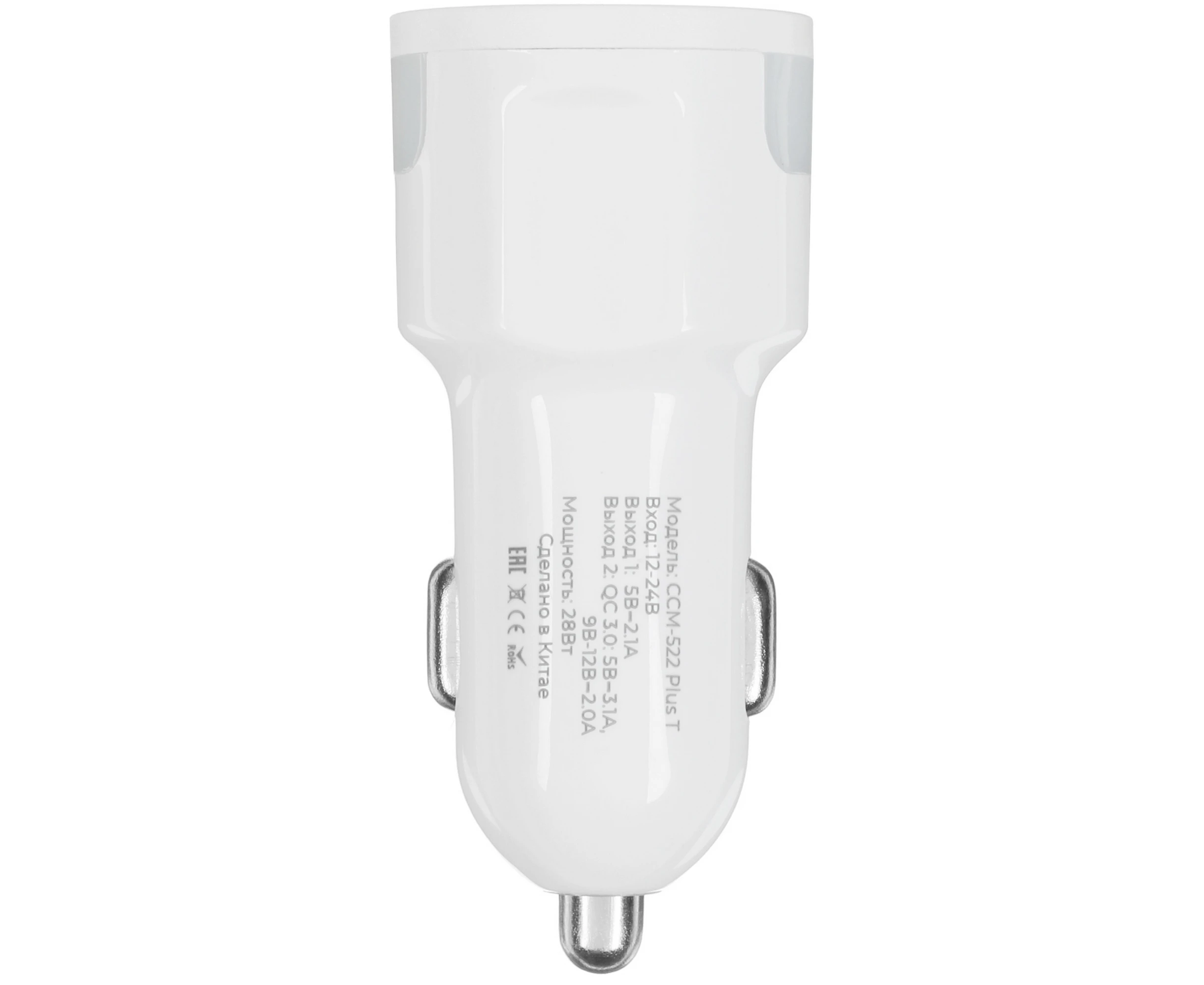 АЗУ Maxvi CCM-522 Plus T white 5.2A, 2xUSB, QC3.0 подсветка синяя