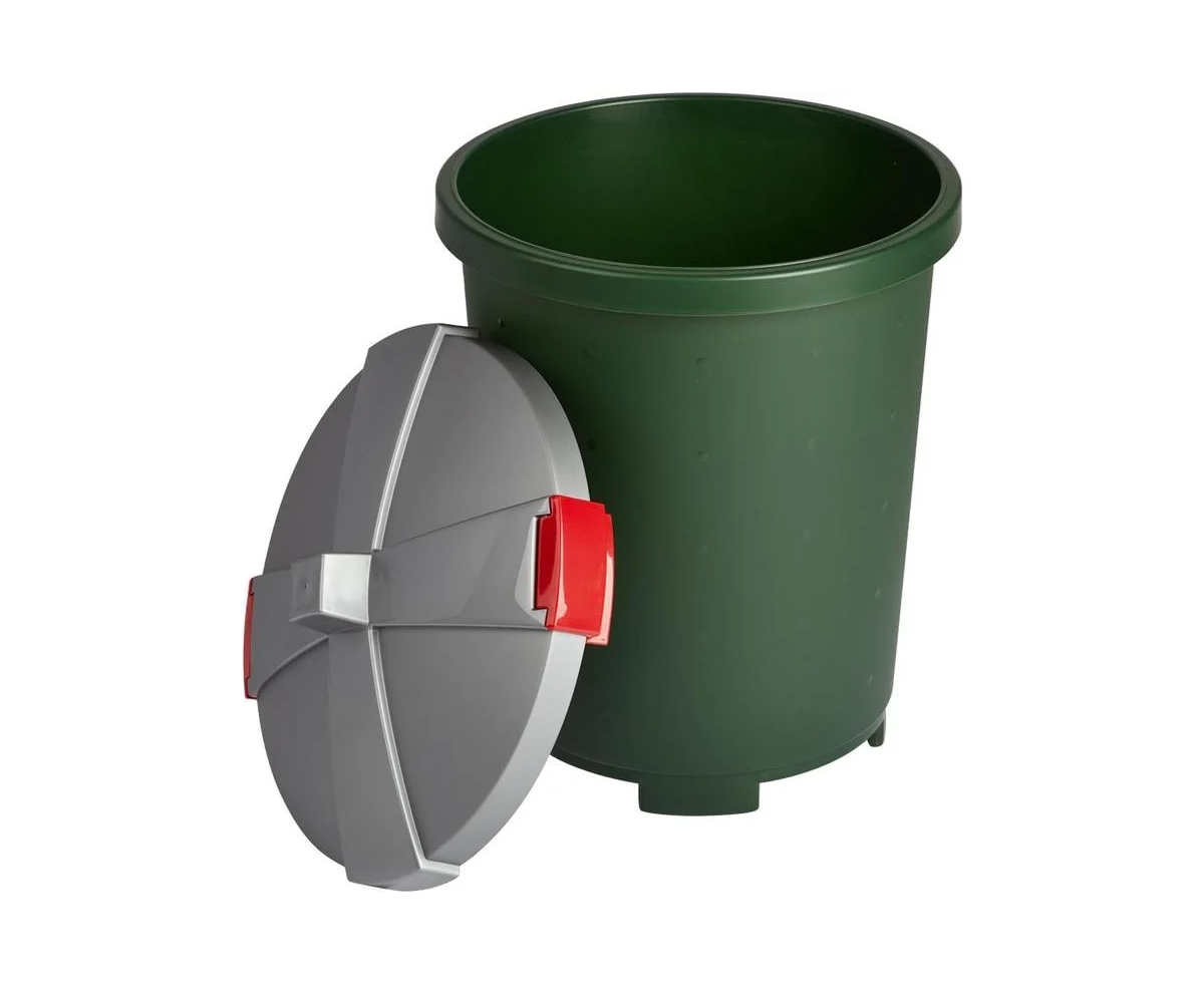 Имеет надежные застежки и крышку, поэтому не пропускает наружу неприятные запахи.