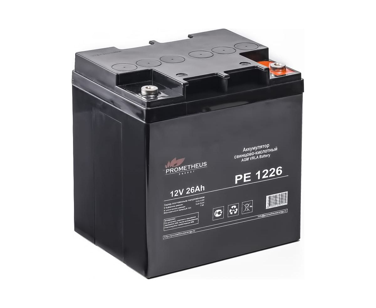 Батарея аккумуляторная Prometheus (26 Ач; 12 В) Prometheus energy PE1226 подходит для использования как в буферном, так и в циклическом режимах работы. Рекомендована для применения в переносных и портативных приборах. За счет стабильно высокой однородности внутреннего сопротивления прекрасно подходит для использования в источниках резервного энергоснабжения и блоках резервного питания.