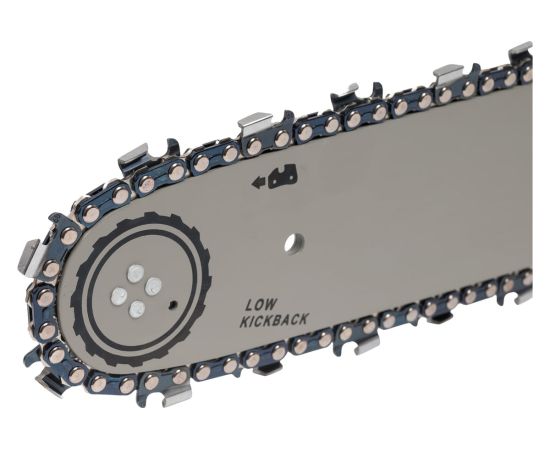 Тормоз цепи останавливает ее вращение в случае отскока, снижая вероятность травмы во время работы.