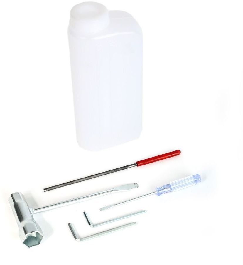Комплектация: Бензопила, емкость для смешивания топливной смеси, напильник для заточки цепи