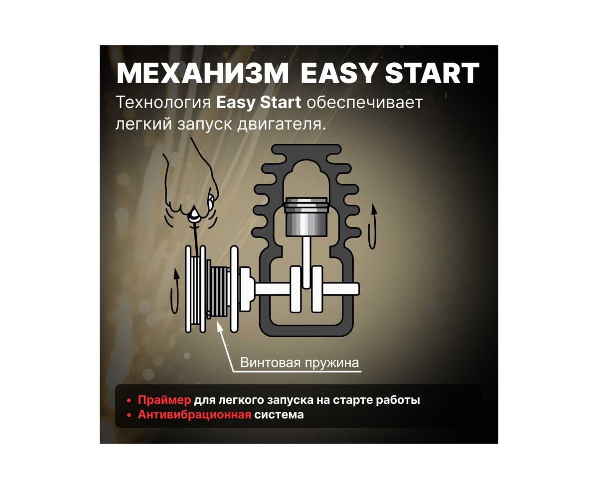 Легкий запуск. Система Easy Start обеспечивает простой пуск двигателя с минимальной отдачей.