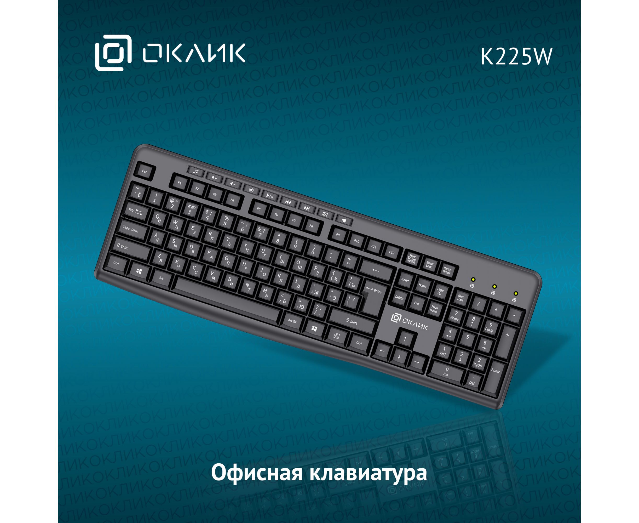 Беспроводная клавиатура OKLICK K225W (1875232) черный USB Multimedia