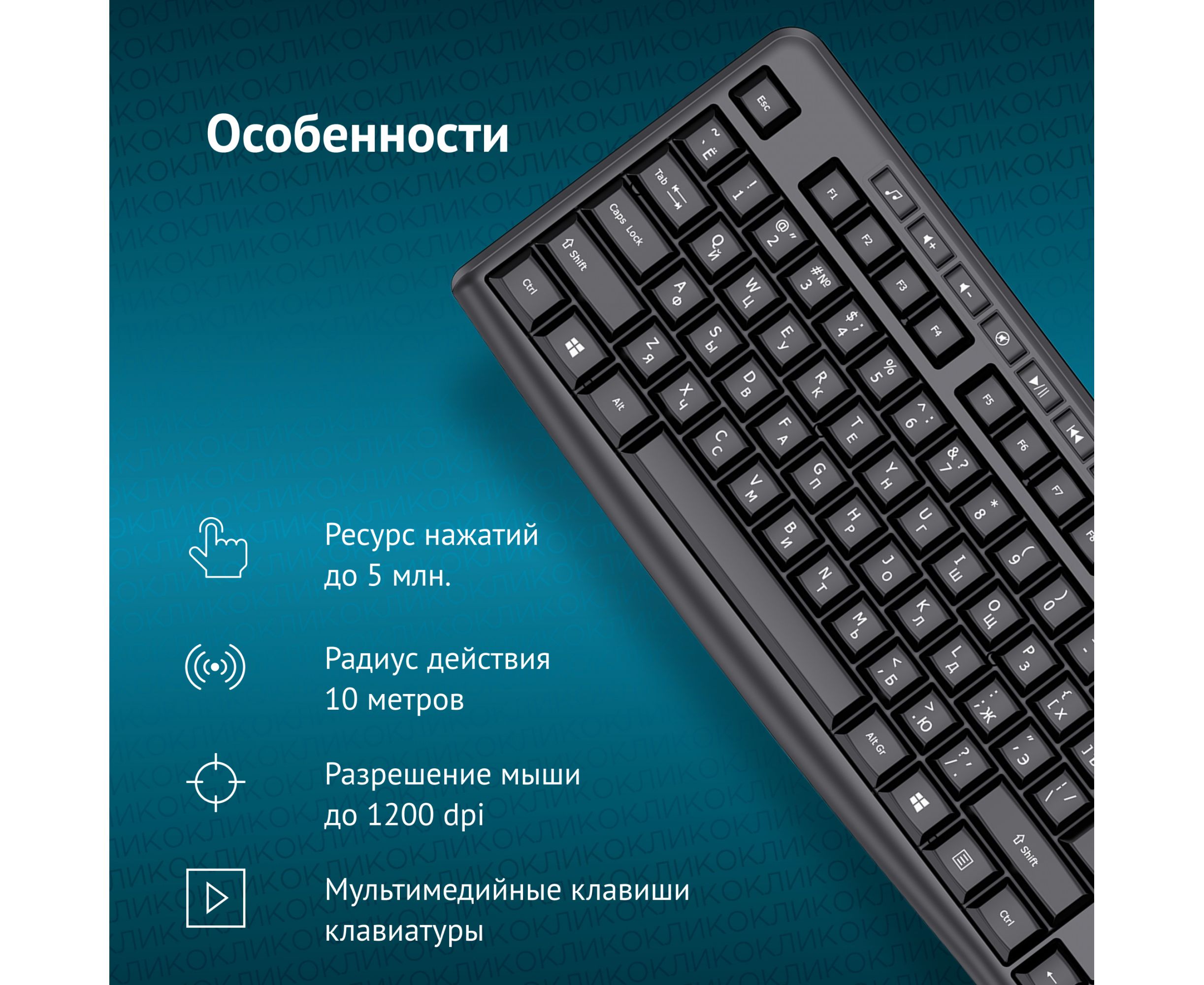 Радиус действия клавиатуры - 10 м