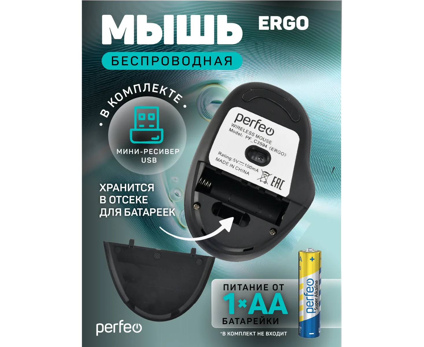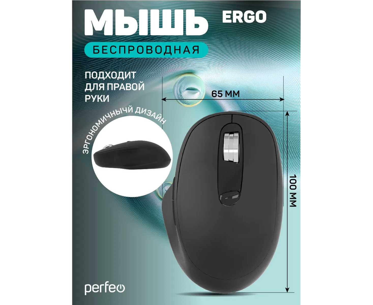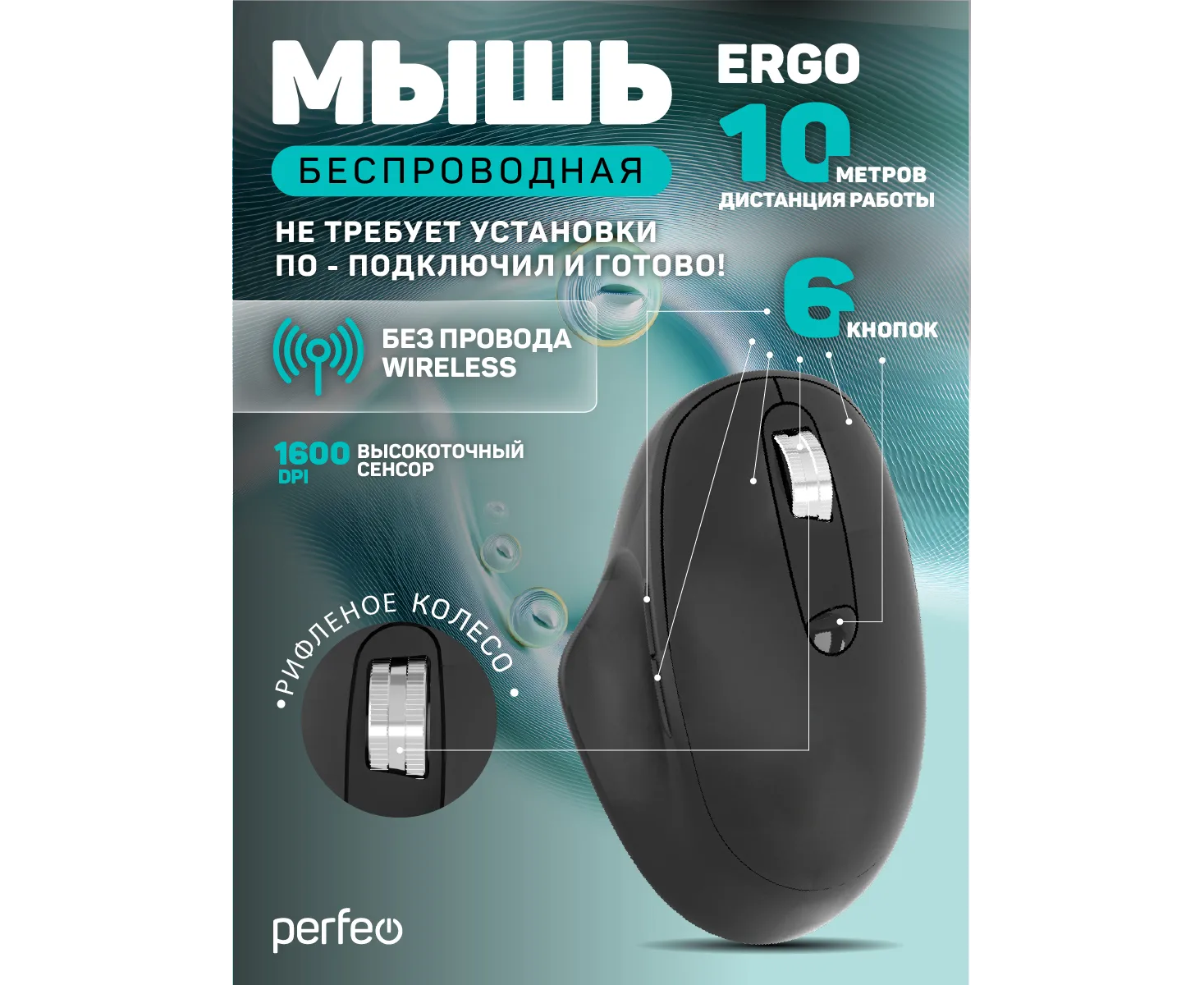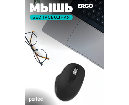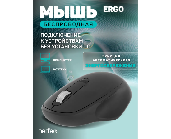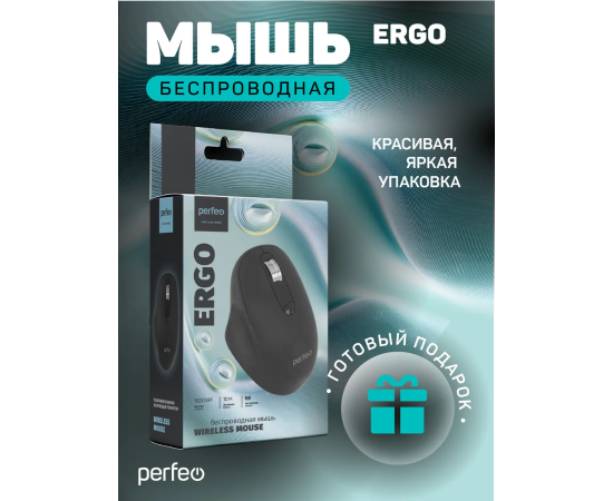 Беспроводная мышь Perfeo, оптич. "ERGO", 6 кн, 800-1600 DPI, USB, чёрный