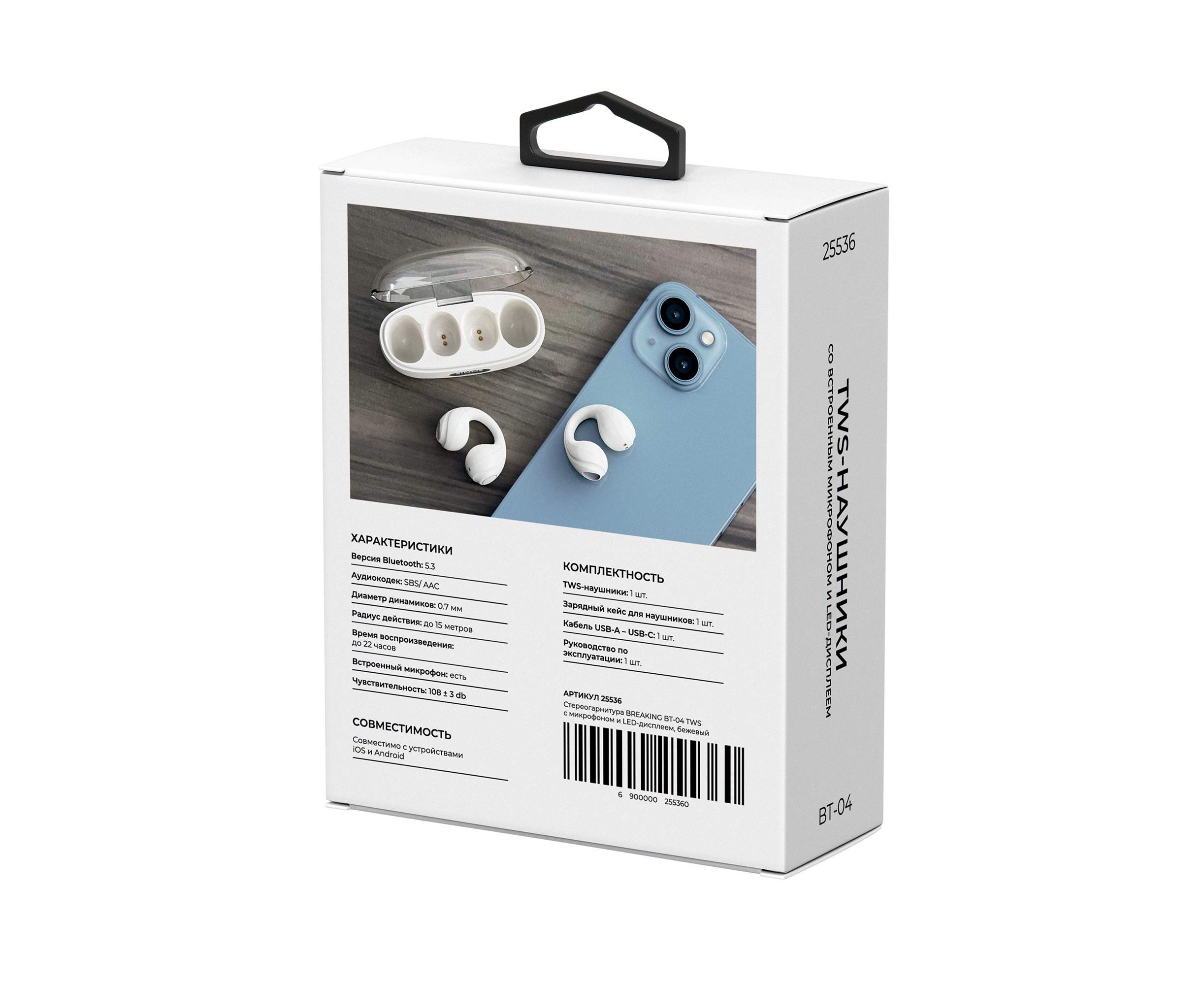 Беспроводная стереогарнитура Breaking BT-04 Clips, LED, Bluetooth 5.3 (Бежевый)