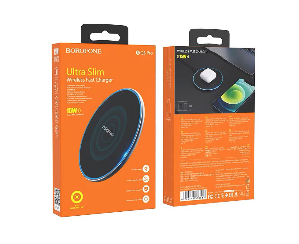 Беспроводное ЗУ BOROFONE BQ3 Pro 15W wireless fast charger (черный)