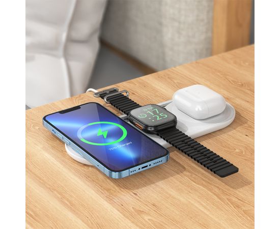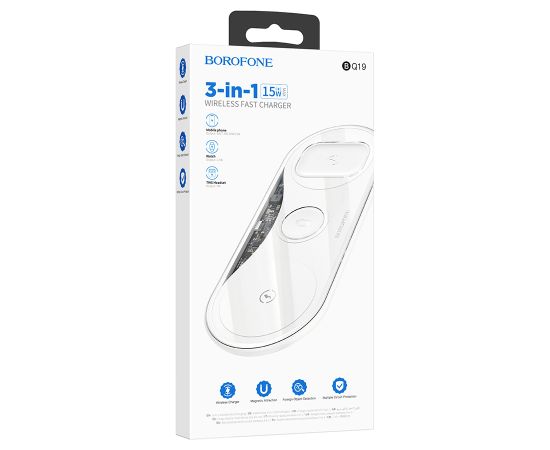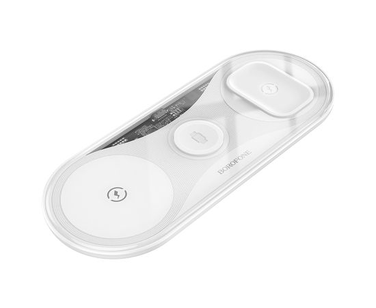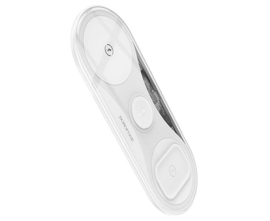 Беспроводное зарядное устройство BOROFONE BQ19 Powerful 3-in-1 для iPhone+Airpods+Apple Watch, 3A, 5W/7.5W/10W/15W, белый