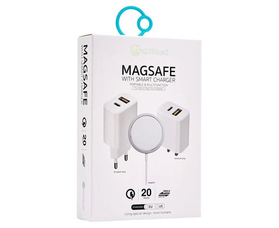 Беспроводное зарядное устройство MagSafe COTEetCI CS5715-U 2-in-1 MagSafe с Кабелем Type-C, 20W, белый