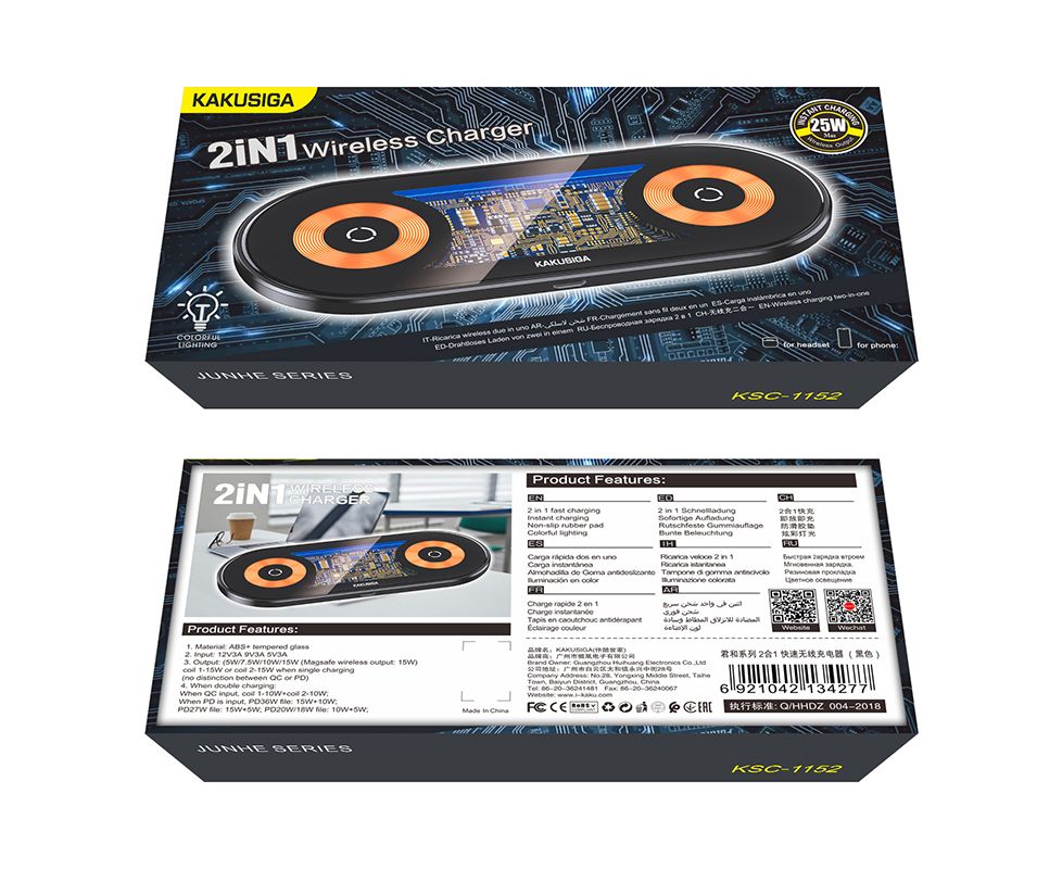 Беспроводное зарядное устройство KAKUSIGA KSC-1152 2-in-1 15W Black