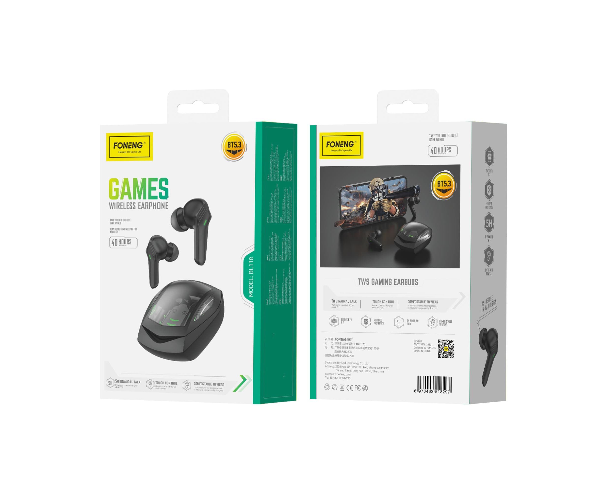 Беспроводные Bluetooth-наушники Foneng BL118 MVP Gaming (Black)