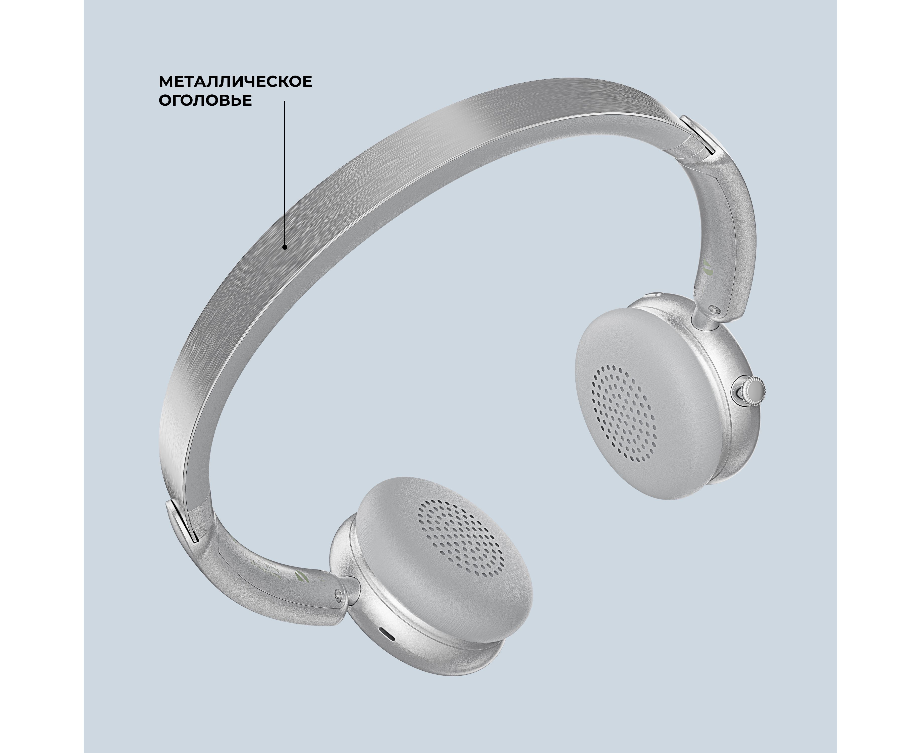 Беспроводные накладные наушники Stereo Light, BT 5.4, 300 мАч, cеребристый, Deppa