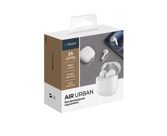 Беспроводные наушники с микрофоном Air Urban, TWS, BT 5.3, 320 мАч, белый, Deppa