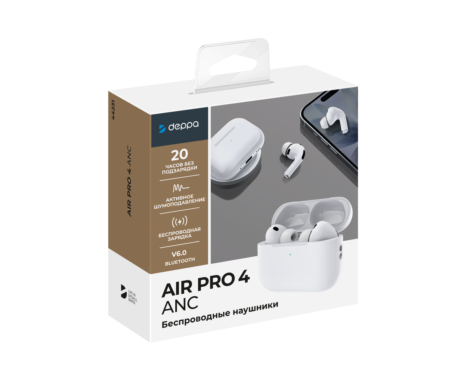 Беспроводные наушники с микрофоном Air Pro 4 ANC, TWS, BT 6.0, 300 мАч, ANC, QI, белый, Deppa
