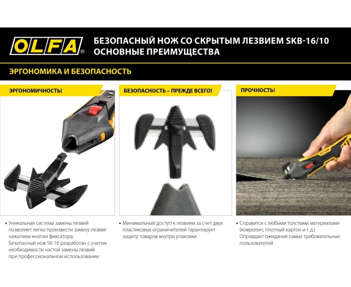 Безопасный нож Olfa OL-SK-16 для вскрытия коробок