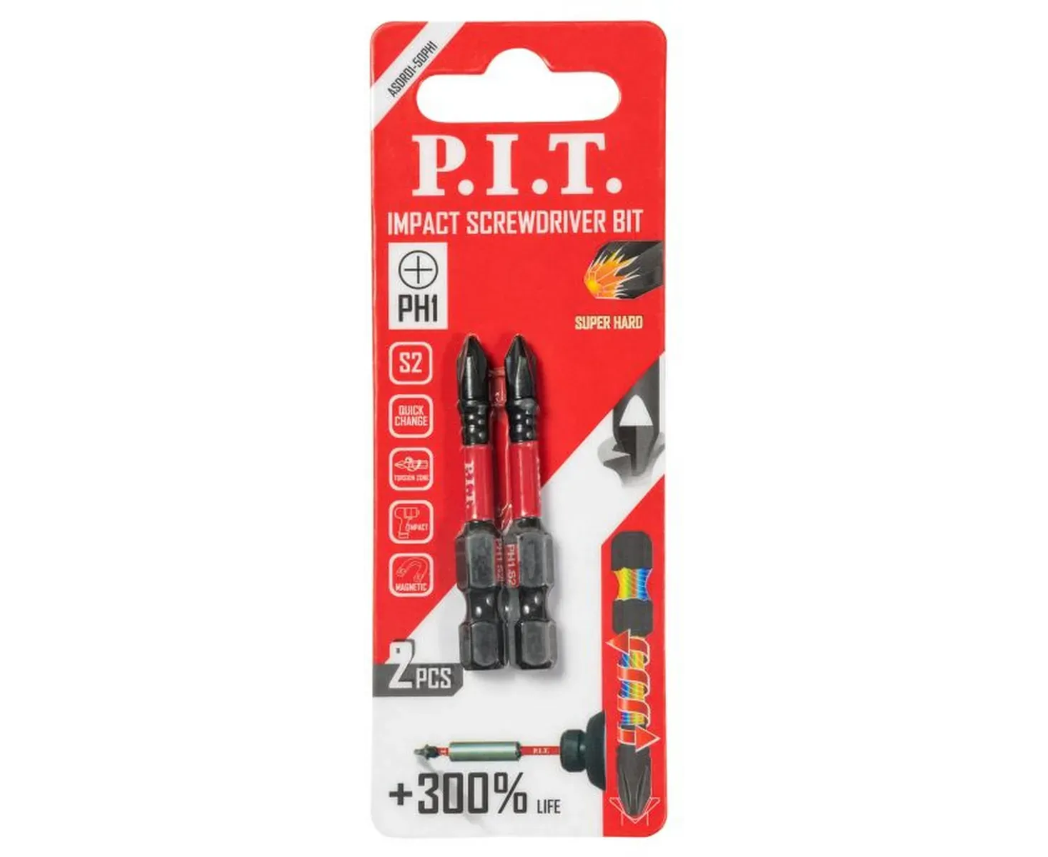 Бита ударная P.I.T. PH1x50 мм (ASDR01-50PH1) 2 шт в уп.
