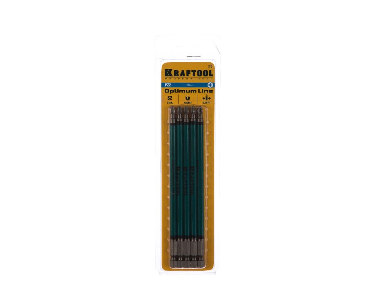 Биты KRAFTOOL 26124-2-150-5 Optimum Line, PZ2, тип хвостовика E 1/4", 150мм, 5шт в блистере