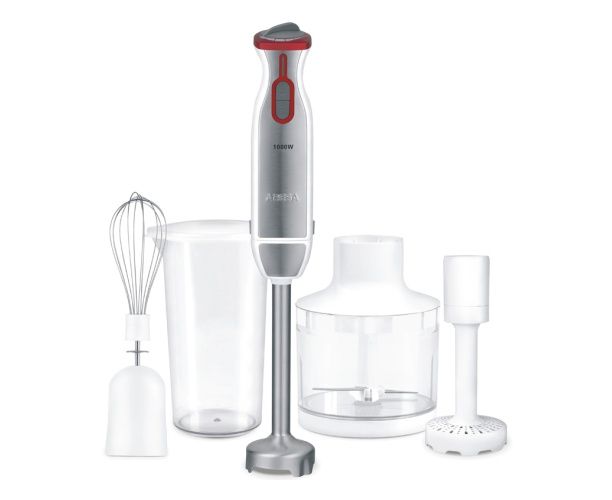 Комплектация насадка-блендер, чаша для измельчения 400 мл, крышка мерного стакана, крышка чаши, венчик для взбивания, документация, мерный стакан 0.6 л, насадка для приготовления пюре