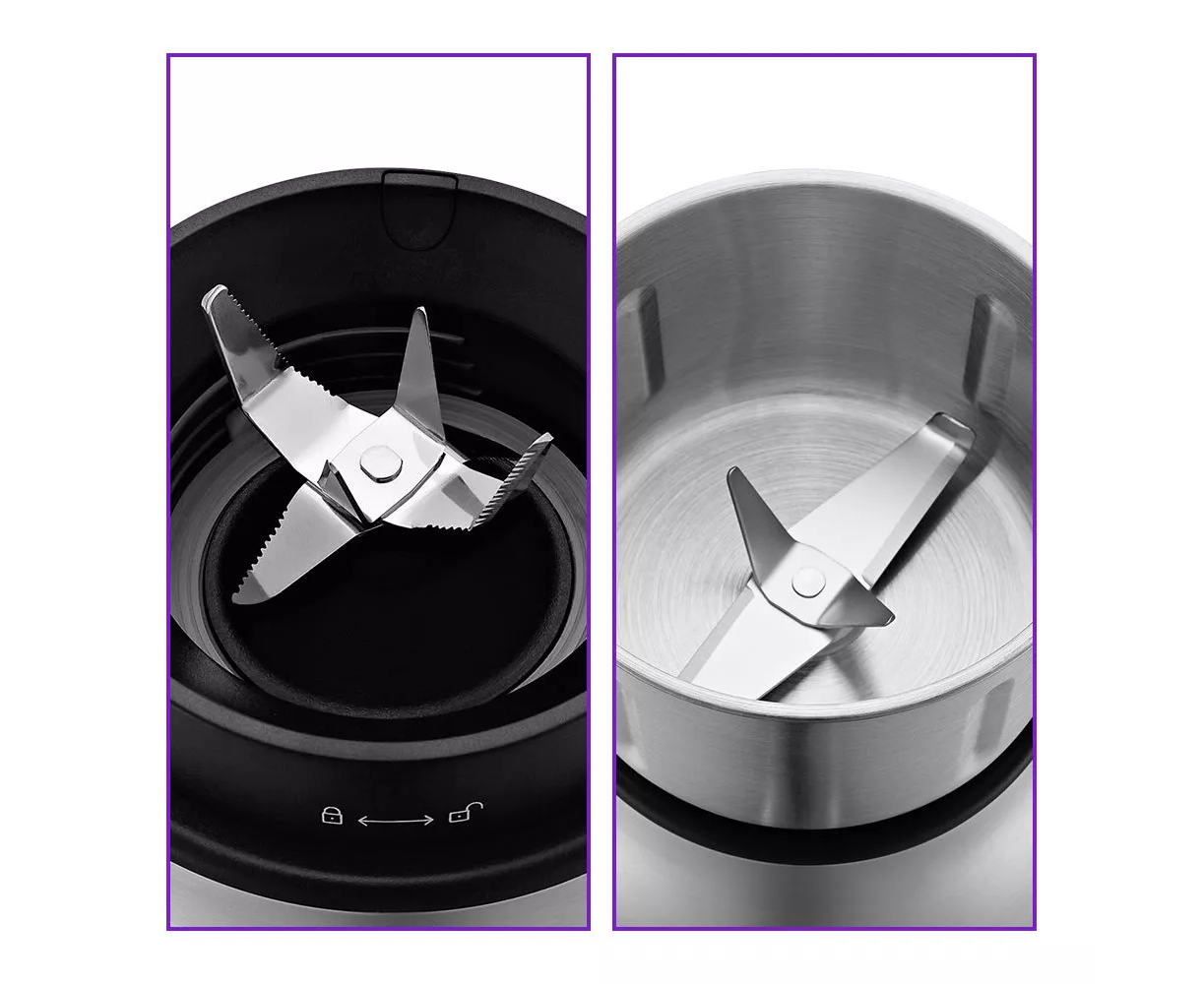 Блендер и измельчитель. Благодаря надёжному двигателю мощностью 800 Вт, прибор справится со смешиванием коктейлей, взбиванием, измельчением, дроблением, с приготовлением фарша, колкой льда и помолом кофейных зёрен, специй.