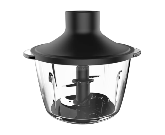 Чаша измельчителя выполнена из стекла и оснащена ножами Double blades, объем 0,8л.