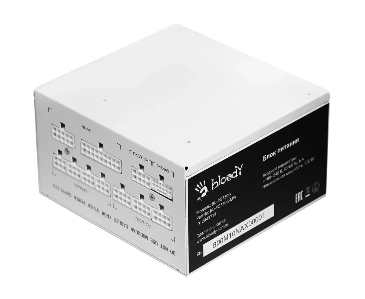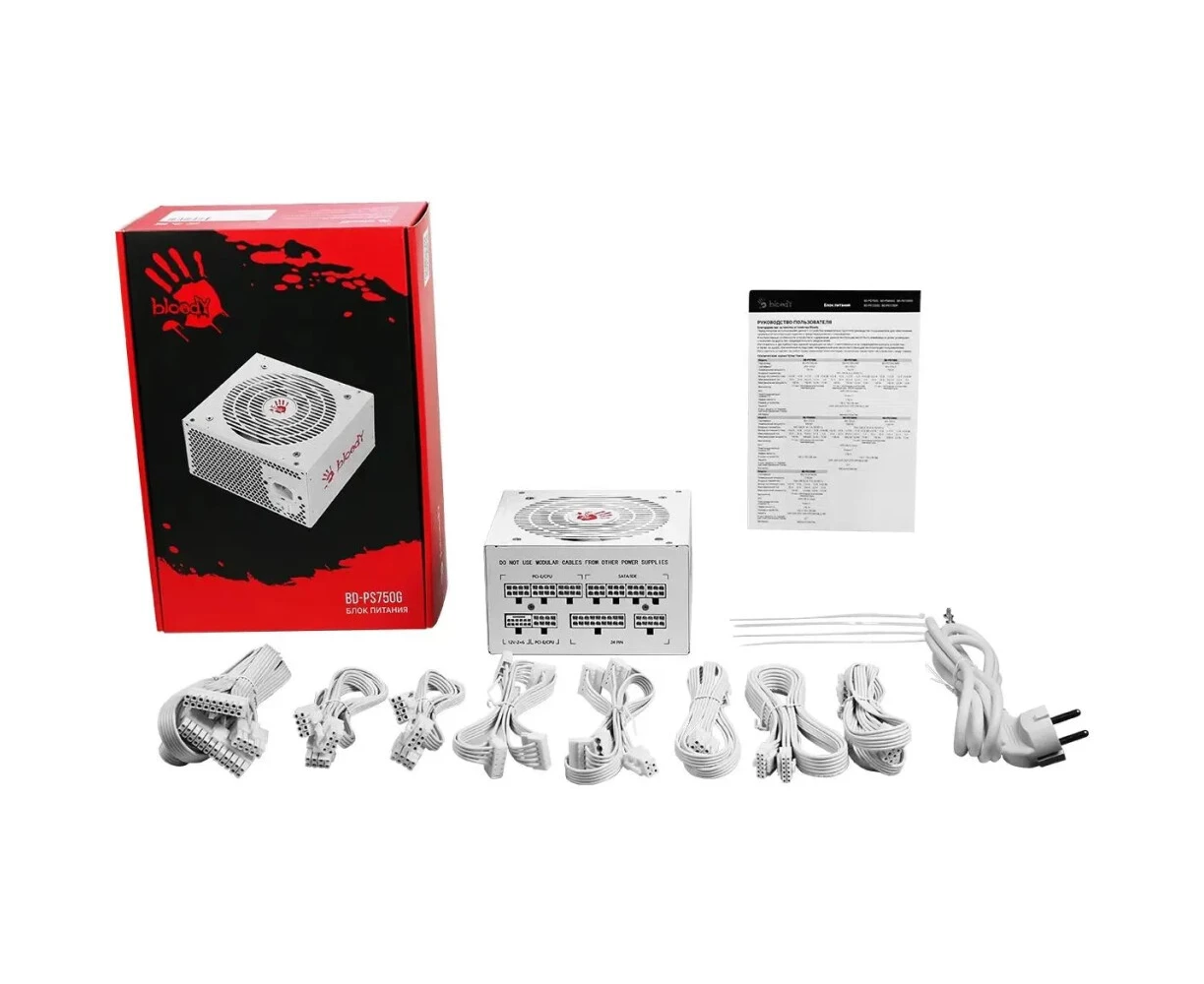 Блок питания BLOODY BD-PS750G (BD-PS750G-MW), 750Вт, 120мм, белый, retail