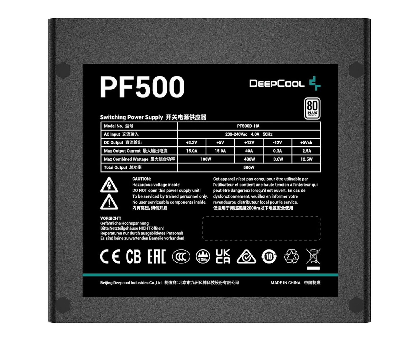 Блок питания Deepcool PF500 V2 (R-PF500D-HA0B-WDEU) ATX 500W 80 Plus White (20+4pin) APFC 120mm fan 6xSATA RTL