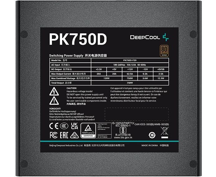 Блок питания Deepcool PK750D (R-PK750D-FA0B-EU) ATX 750W 80+ bronze 24+2x(4+4) pin APFC 120mm fan 8xSATA RTL