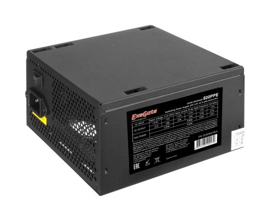 Блок питания ExeGate 500PPE (EX260641RUS-PC) 500W (ATX, APFC, PC, 80 Plus, 12cm fan, 24pin, 2x(4+4)pin, 2xPCI-E, 5xSATA, 3xIDE, black, кабель)
