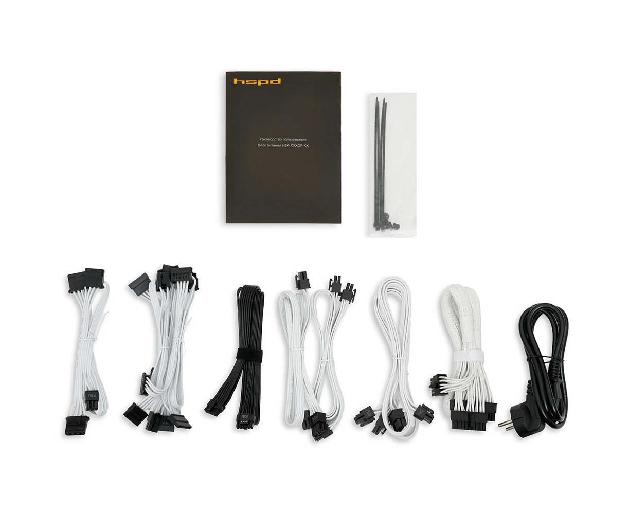 Блок питания HSPD HSK-850GF-WH 850W 80+ Gold (ATX, 3.1, PCIe 5.1, Full modular, 1x24(20+4)pin mesh 550mm, 2xCPU 8(4+4)pin 700mm, 2xPCIe*2 8(6+2)pin 60