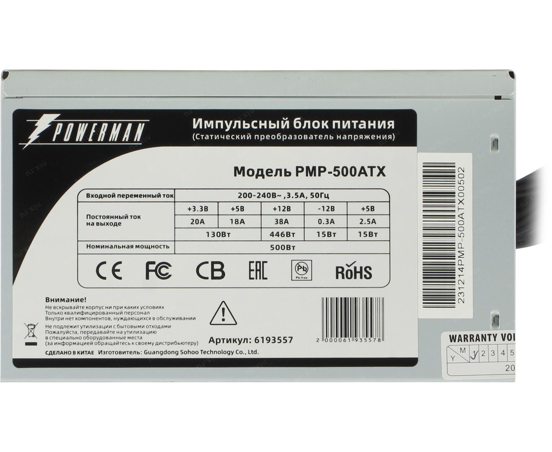 Блок питания INWIN (POWERMAN) PMP-500ATX (6193557)