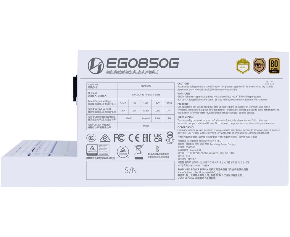 Блок питания LIAN LI EDGE, 850W, 80+ Gold, ATX3.1 (G9P.EG0850G.W000.RU) белый