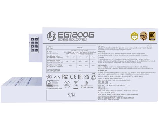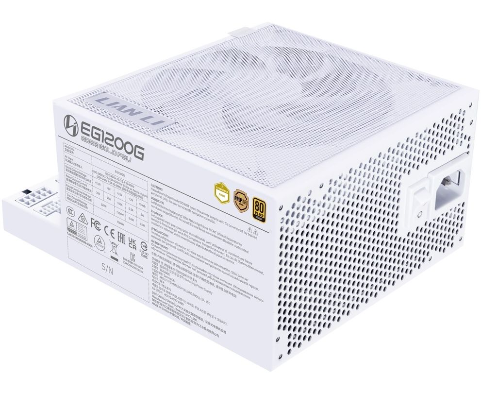 Блок питания Lian Li EG1200G (G9P.EG1200G.WH00.RU) / White / ATX 3.1, 1200W, 80 Plus Gold, PCIe 5.1, APFC, USB/Fan HUB, 120mm FDB Fan, Fully Modular