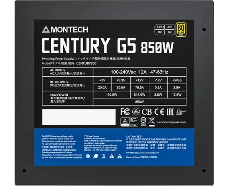 Блок питания MONTECH Century Gold G5, 850Вт, 120мм, retail