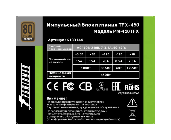 Блок питания Powerman PM-450TFX (6183144) 450W (8cm fan)