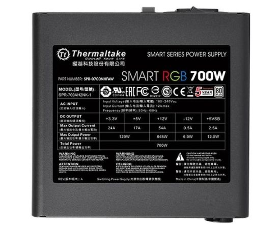 Блок питания Thermaltake Smart RGB [PS-SPR-0700NHSAWE-1] 700W / APFC / 80+ / ATX12V 2.3