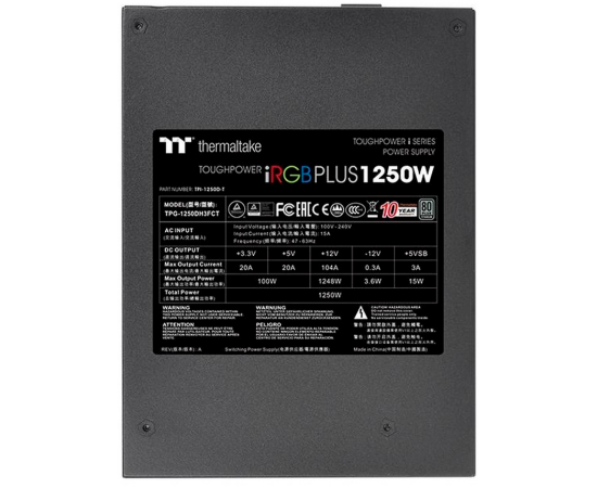 Блок питания Thermaltake Toughpower iRGB Plus (PS-TPI-1250F3FDTE-1)1250W Titanium/Fully Modular/Riing Duo/Digital/80 Plus Titanium/EU