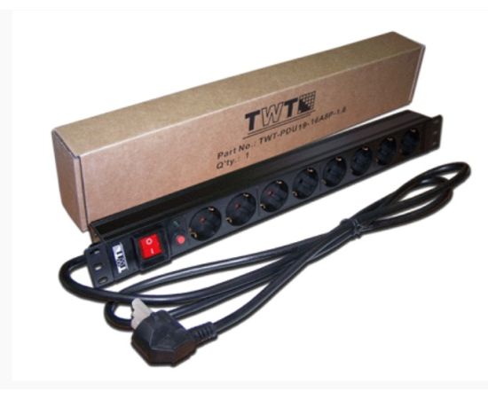 Блок распределения питания Lanmaster TWT-PDU19-16A8P-3.0 гор.размещ. 8xSchuko базовые 16A Schuko 3м