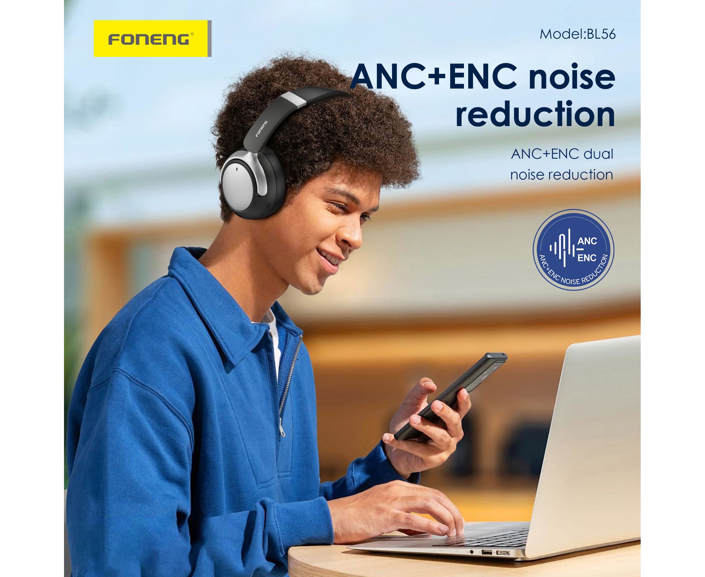 Bluetooth-наушники полноразмерные Foneng BL56 ANC + ENC шумоподавление (Black)
