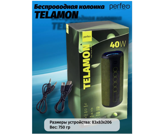 Блютуз колонка Perfeo "TELAMON" FM, MP3 USB/TF, AUX, TWS, LED, HF, 40Вт, 4400mAh, зелёный