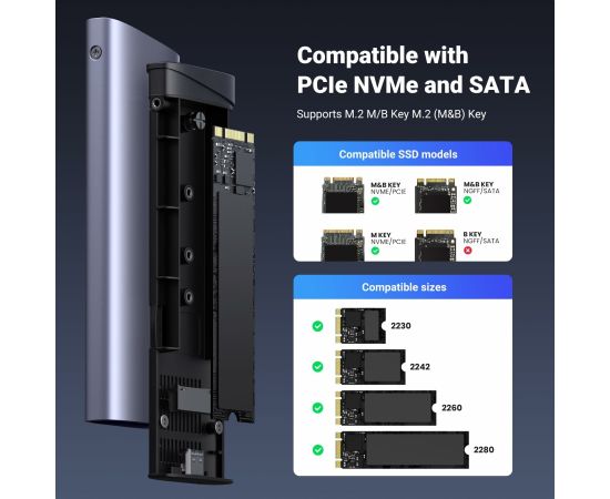 Бокс внешний для жесткого диска UGREEN CM767 (15813) M.2 NVMe/M.2 SATA SSD Enclosure 10Gbps серый