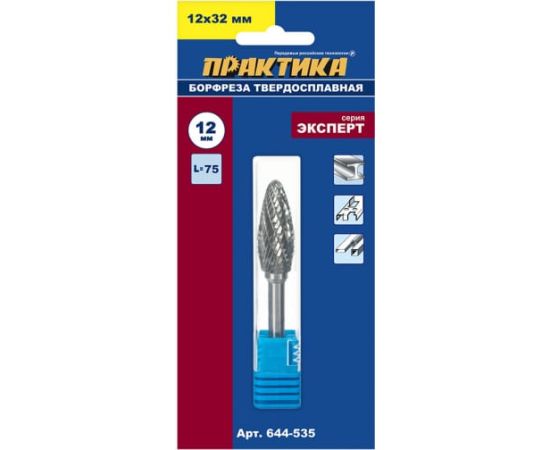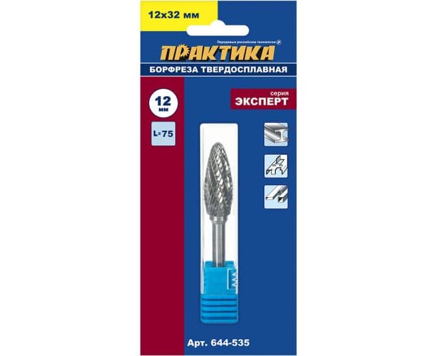 Борфреза твердосплавная Практика тип H эллипсовидная (644-535) 12 х 32 мм, хвостовик 6 мм