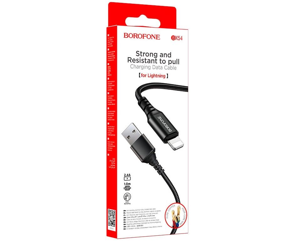 Кабель BOROFONE BX54/ USB Lightning/ 1m/ 2.4A/ Нейлон/ Черный
