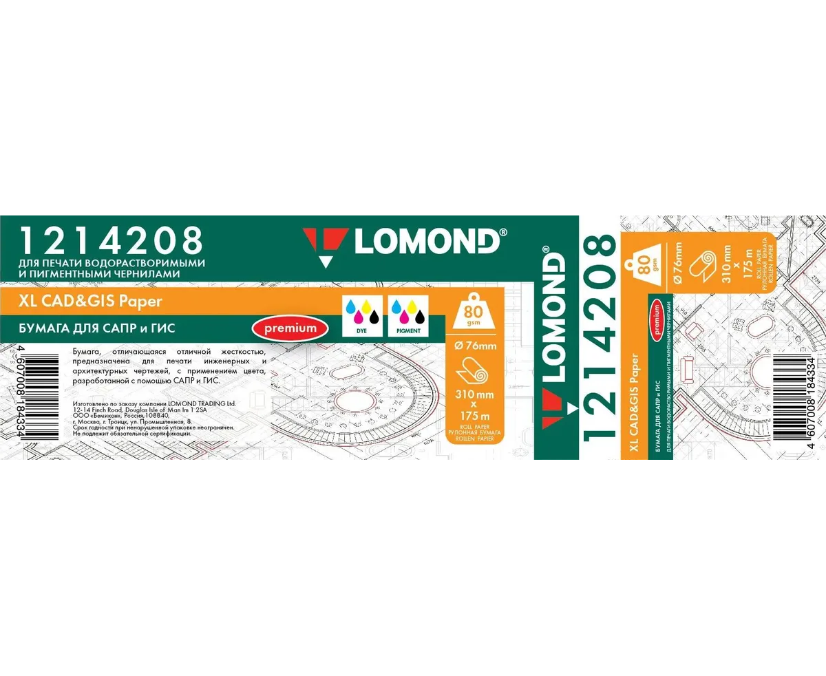 Бумага Lomond 1214208 310мм-175м/80г/м2 инженерная бумага