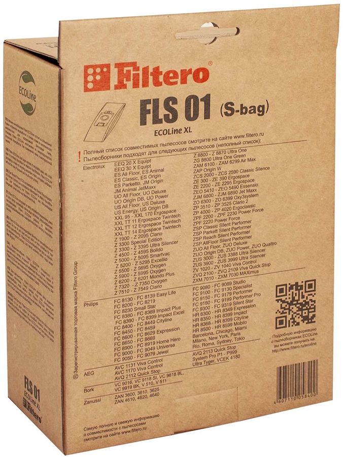 Описание: Мешки-пылесборники Filtero FLS 01 (S-bag) ECOLine 10 штук + микрофильтр. Бумажные пылесборники Filtero произведены из специальной бумаги вторичной переработки, с тонким слоем из синтетического микроволокна для эффективной фильтрации пыли.