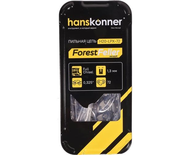 Цепь Hanskonner H20-LPX-72 325"-1,3мм -72зв, квадратный зуб, bumper