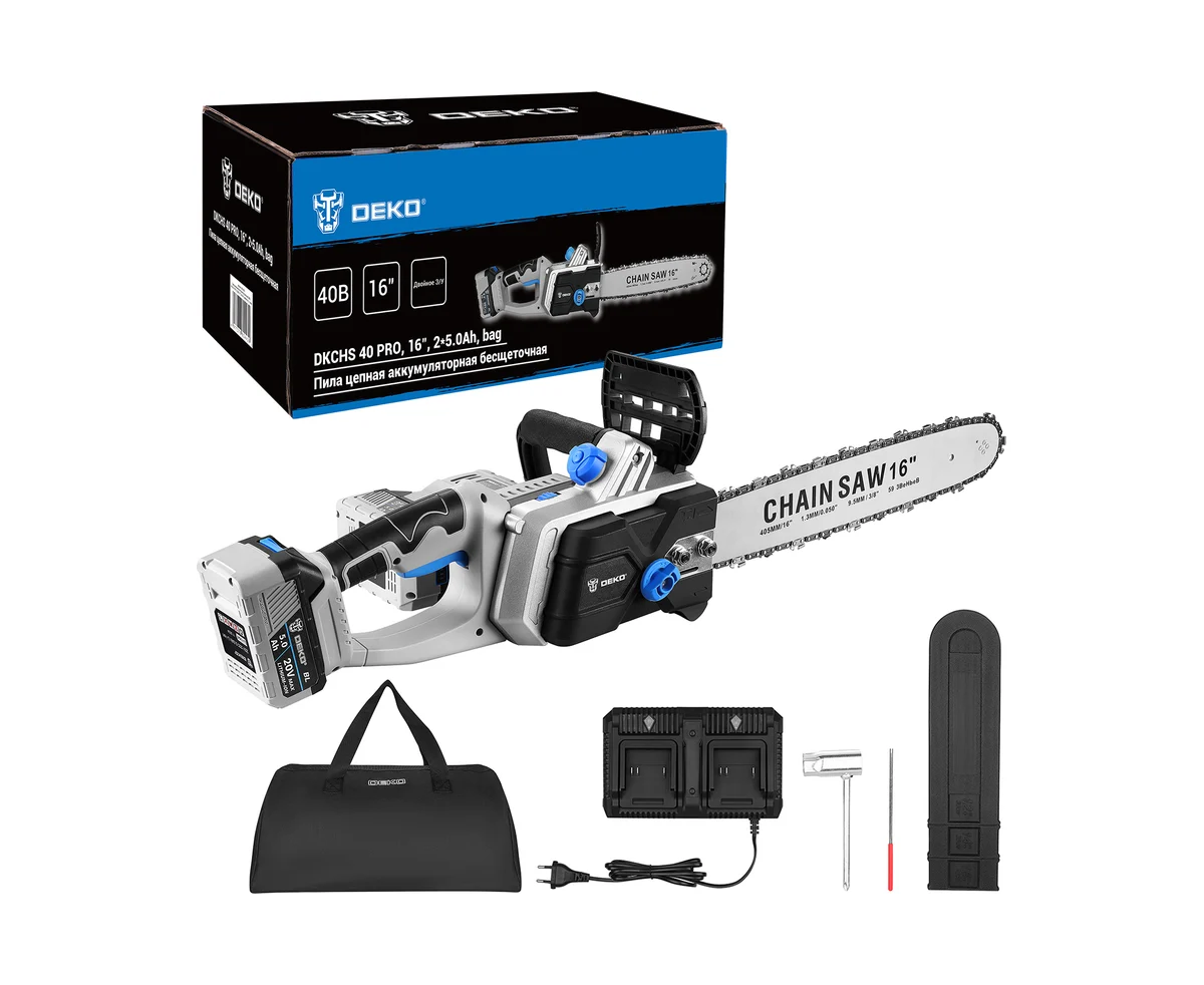 Цепная пила Deko DKCHS 40 Pro (085-2019) с акк и ЗУ аккум. дл.шины:16" (40cm) 2аккум. 5Ач ЗУ