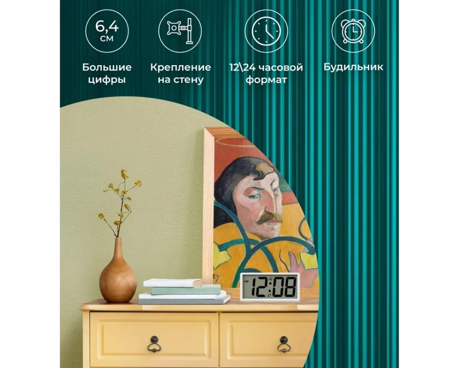 У часов крупные и четкие цифры (высота цифр 6,4 см).